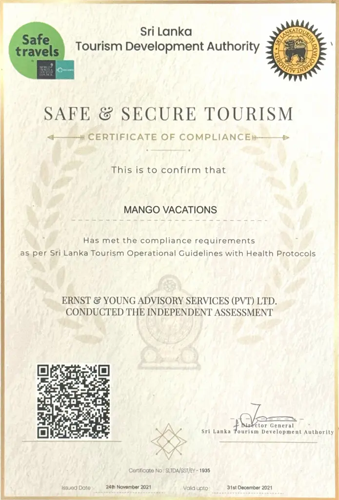 Mango Vacations is an award-winning, fully licensed Sri Lanka travel agency, officially recognized by the Sri Lanka Tourism Development Authority and aligned with global standards set by the World Travel & Tourism Council.